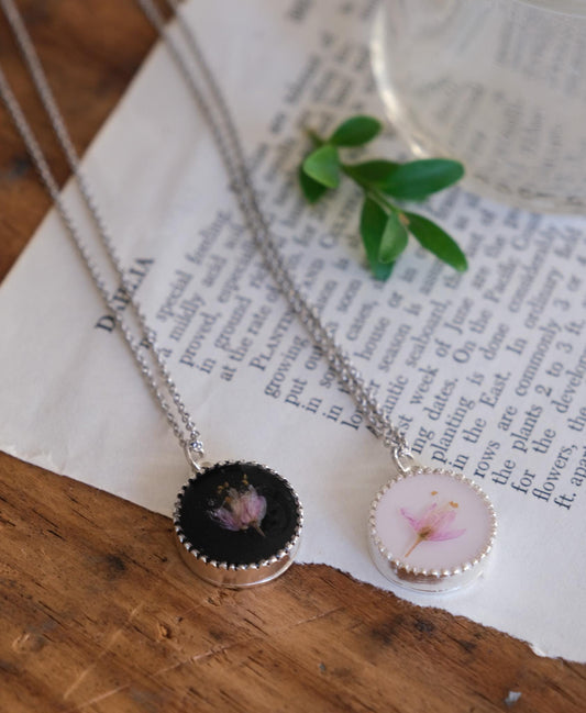 Cable Edge Real Pressed Flower Necklace on Black Background
